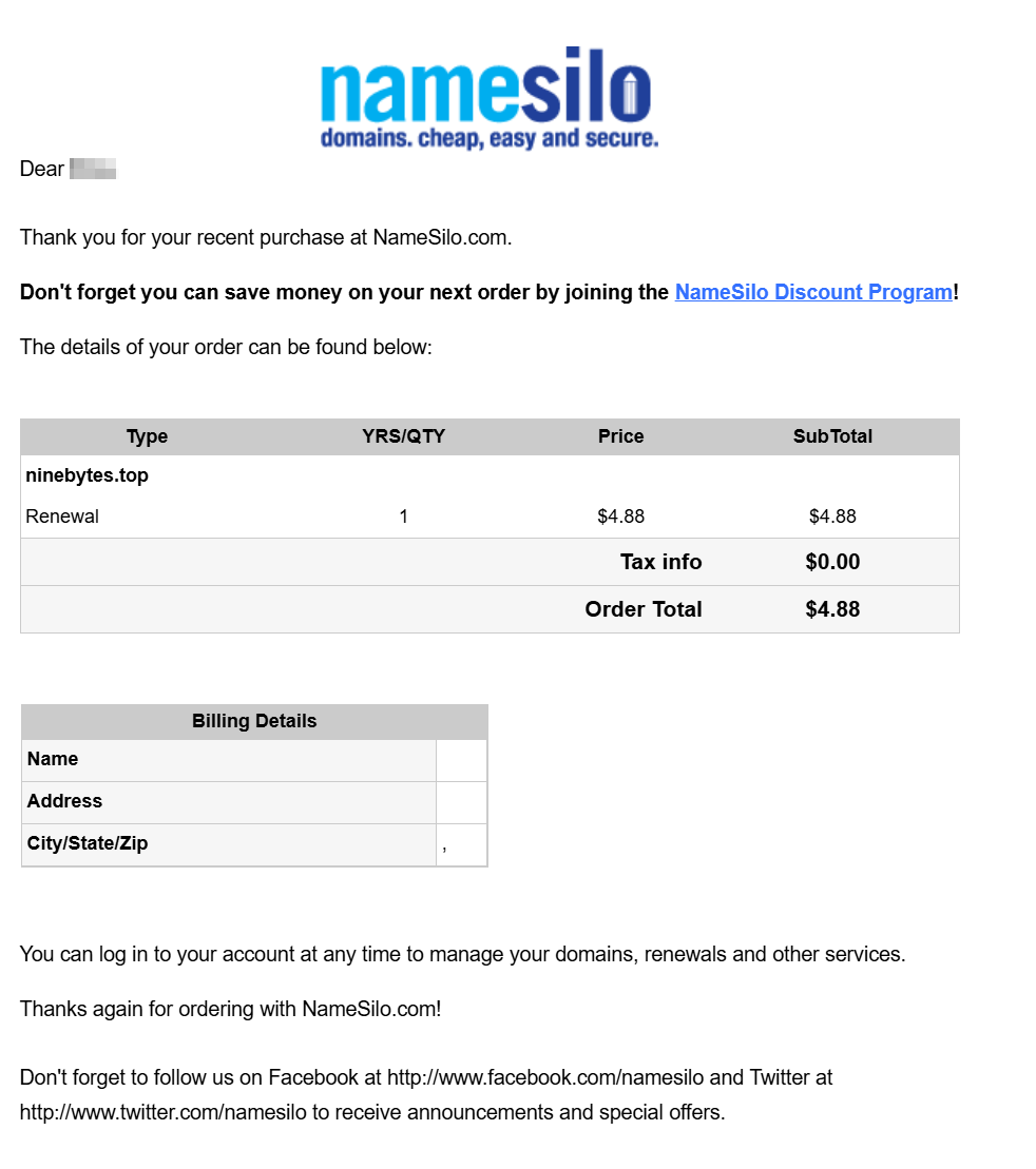 就只能再续费1年了,花费$4.88刀勒。😭