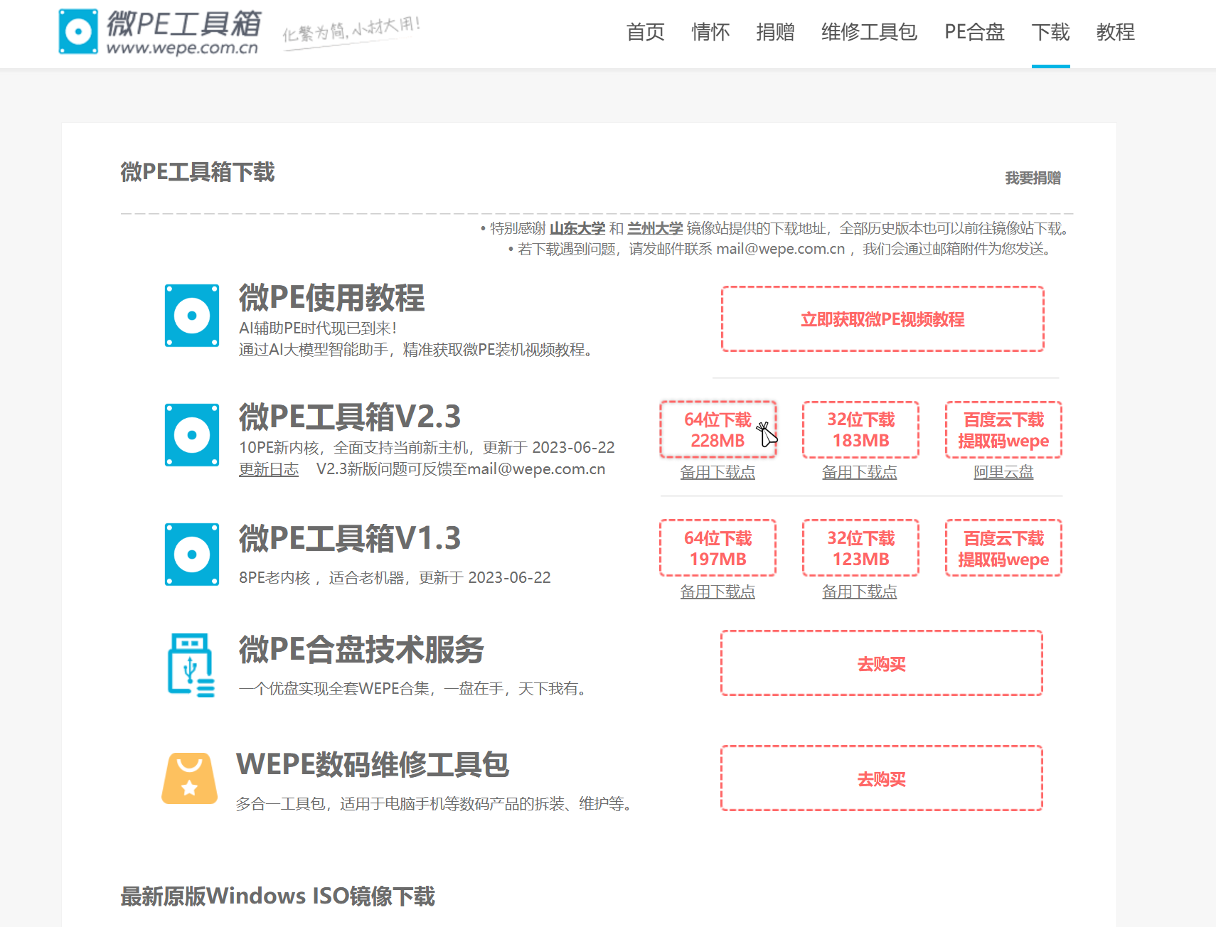 如果你的机器是已经淘汰下来的机器,例如英特尔酷睿2代、3代等,那就选择下载微PE工具箱旧版本。